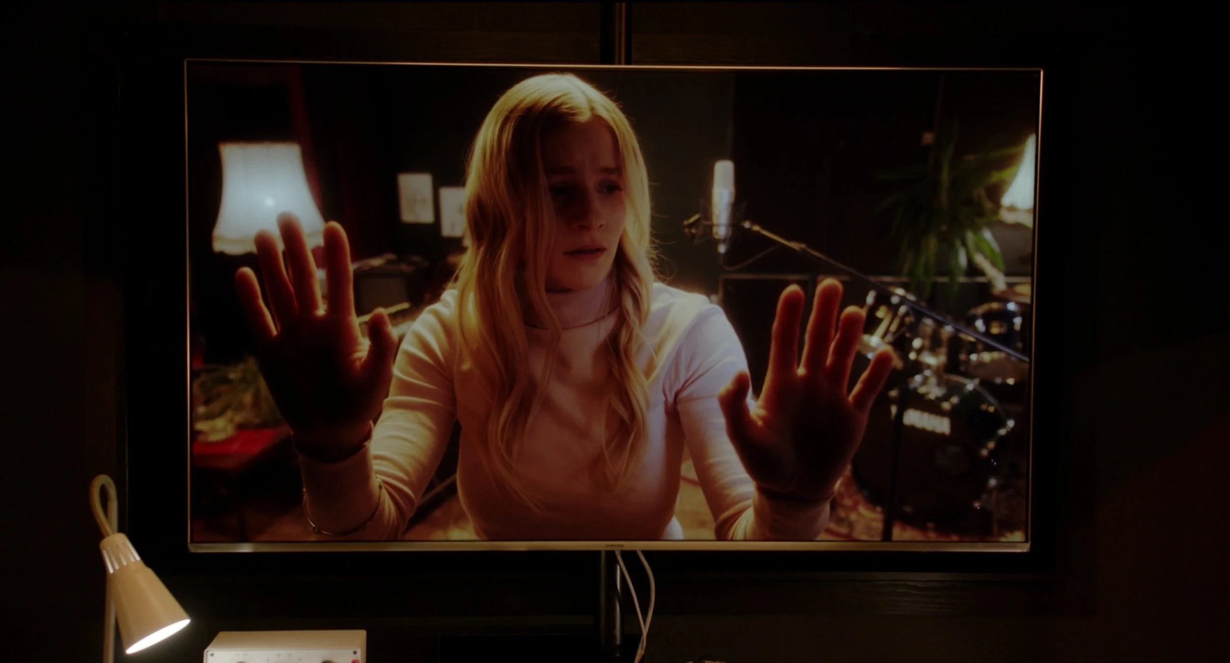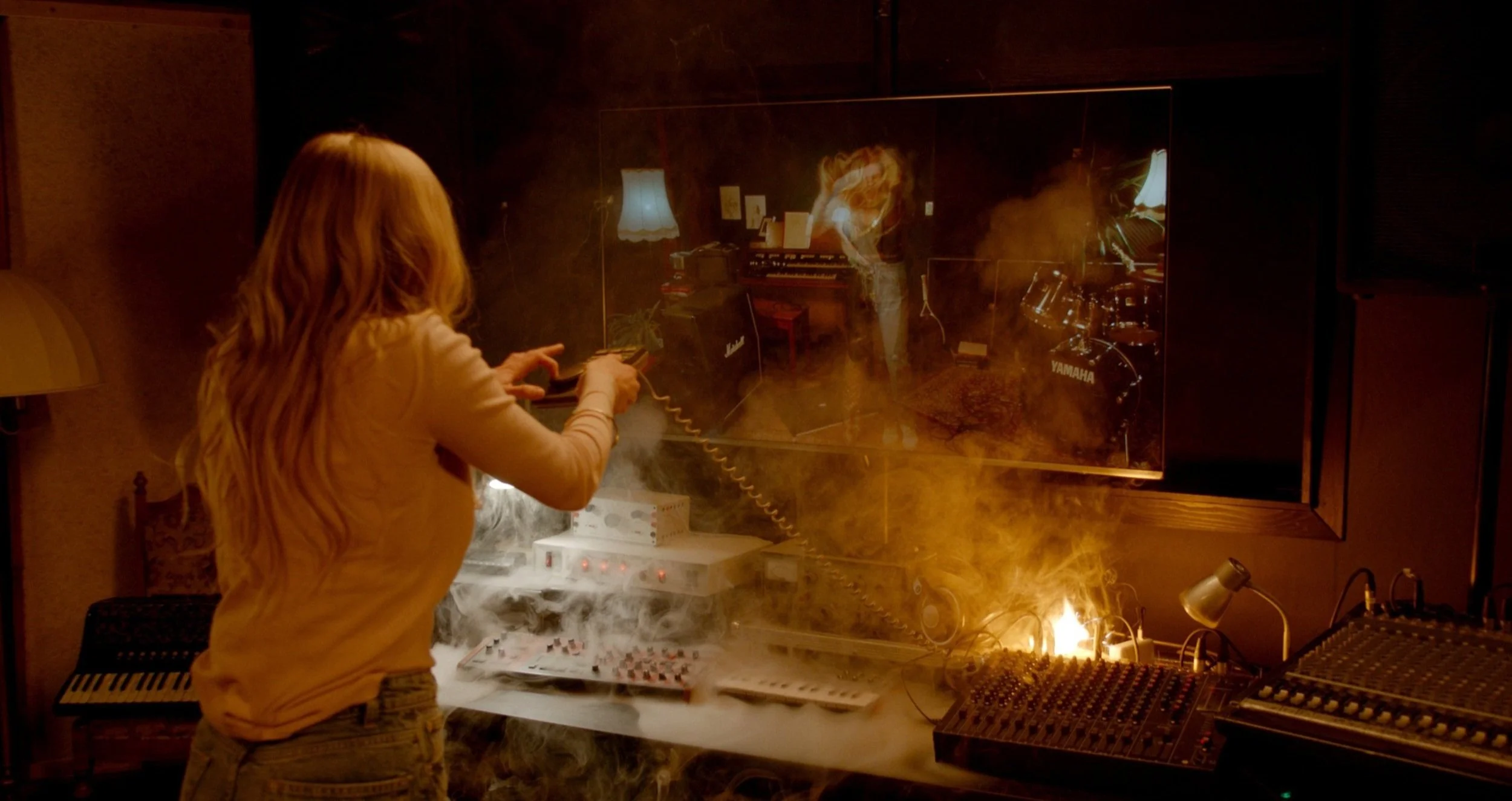 To achieve this, she scrutinizes video recordings of her rehearsals and discovers that she can communicate with her alter ego trapped on the screen. A sinister power dynamic develops between the two. Driven by a desire for self-improvement, she becomes her own harshest coach. Ruthlessly intolerant of mistakes, Daisy forces her reflection to improve and push beyond its limits. Sing higher, lower, dance faster, more! Her passion becomes obsession and she loses control. The recording studio goes up in flames. Once destroyed, the alter ego re-emerges amidst the remains and takes on a life of its own.